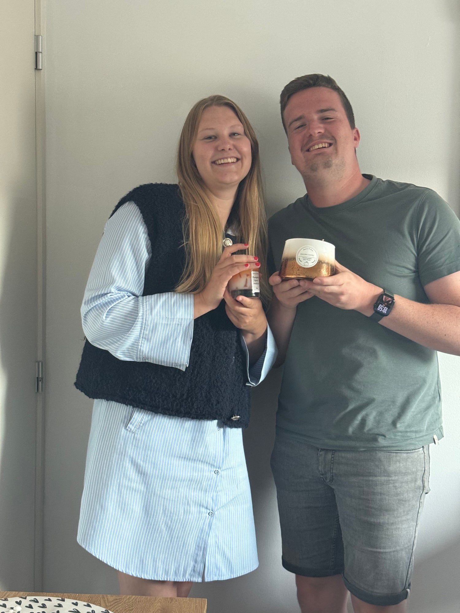 Laura focust zich op het gieten en maken van de kaarsen, met oog voor detail en kwaliteit. Emiel denkt actief mee over nieuwe ideeën, werkt mee aan het maken van de potjes en draagt bij aan de verdere uitbouw van Blend. Samen zijn we dagelijks betrokken bij elk onderdeel van het proces.